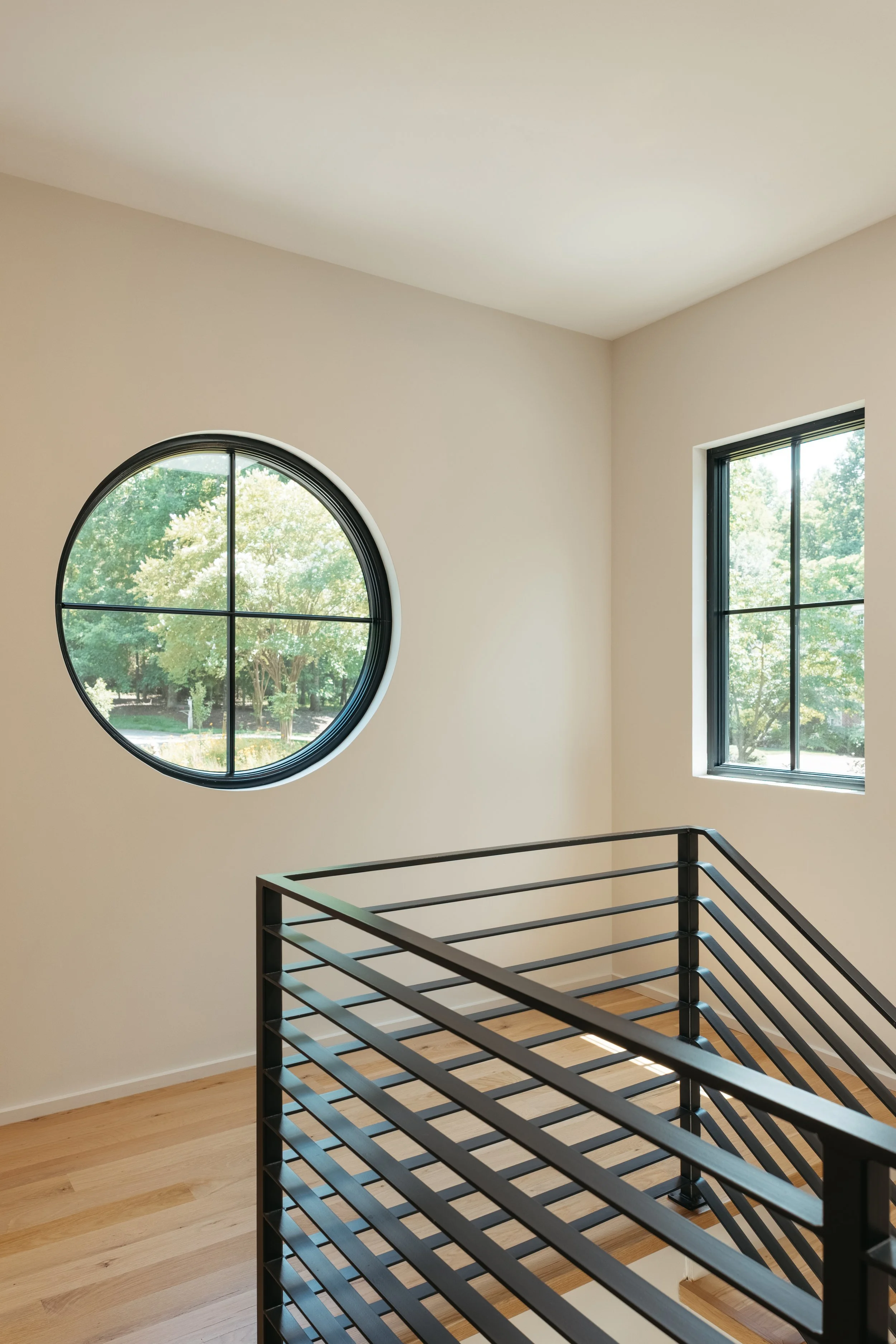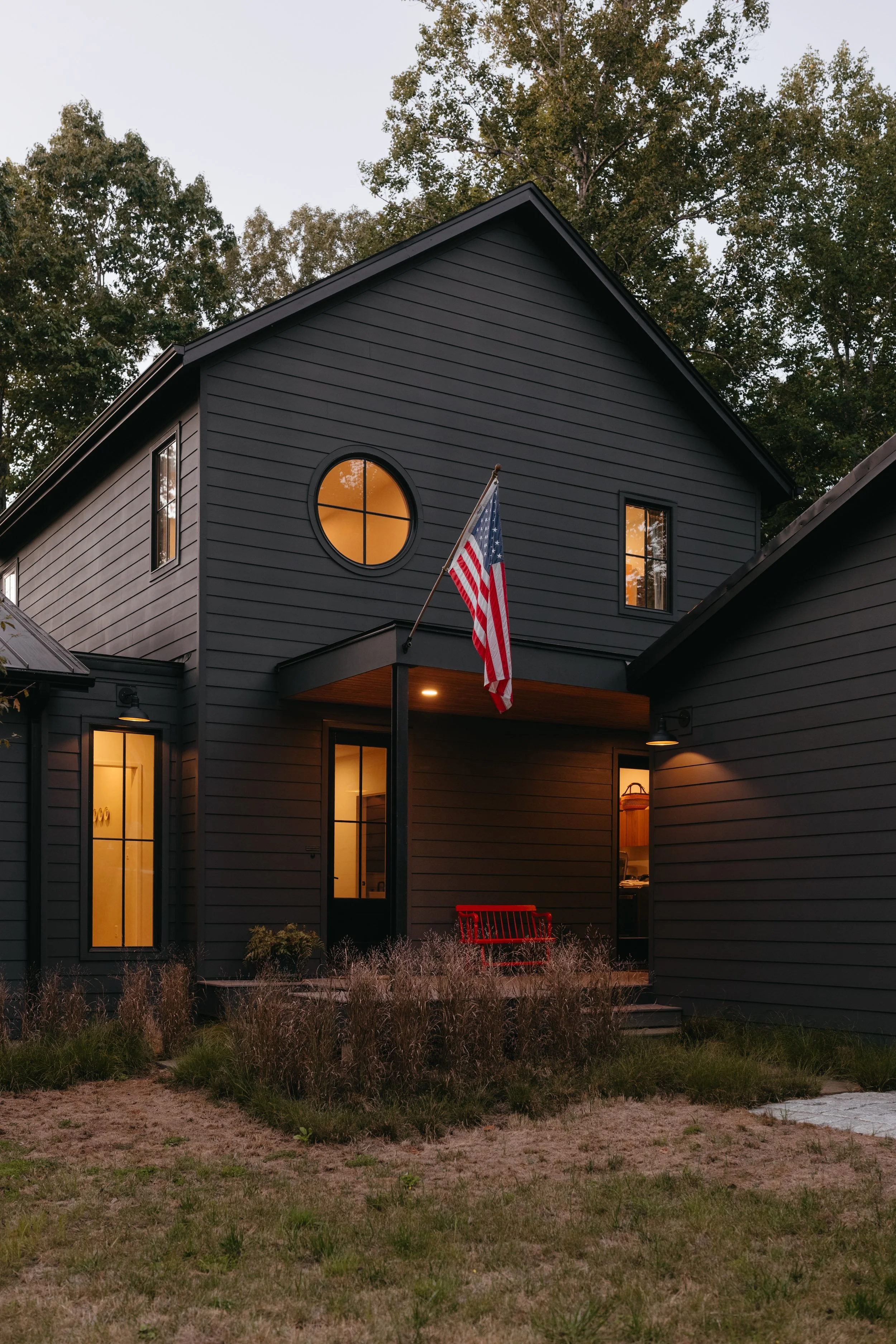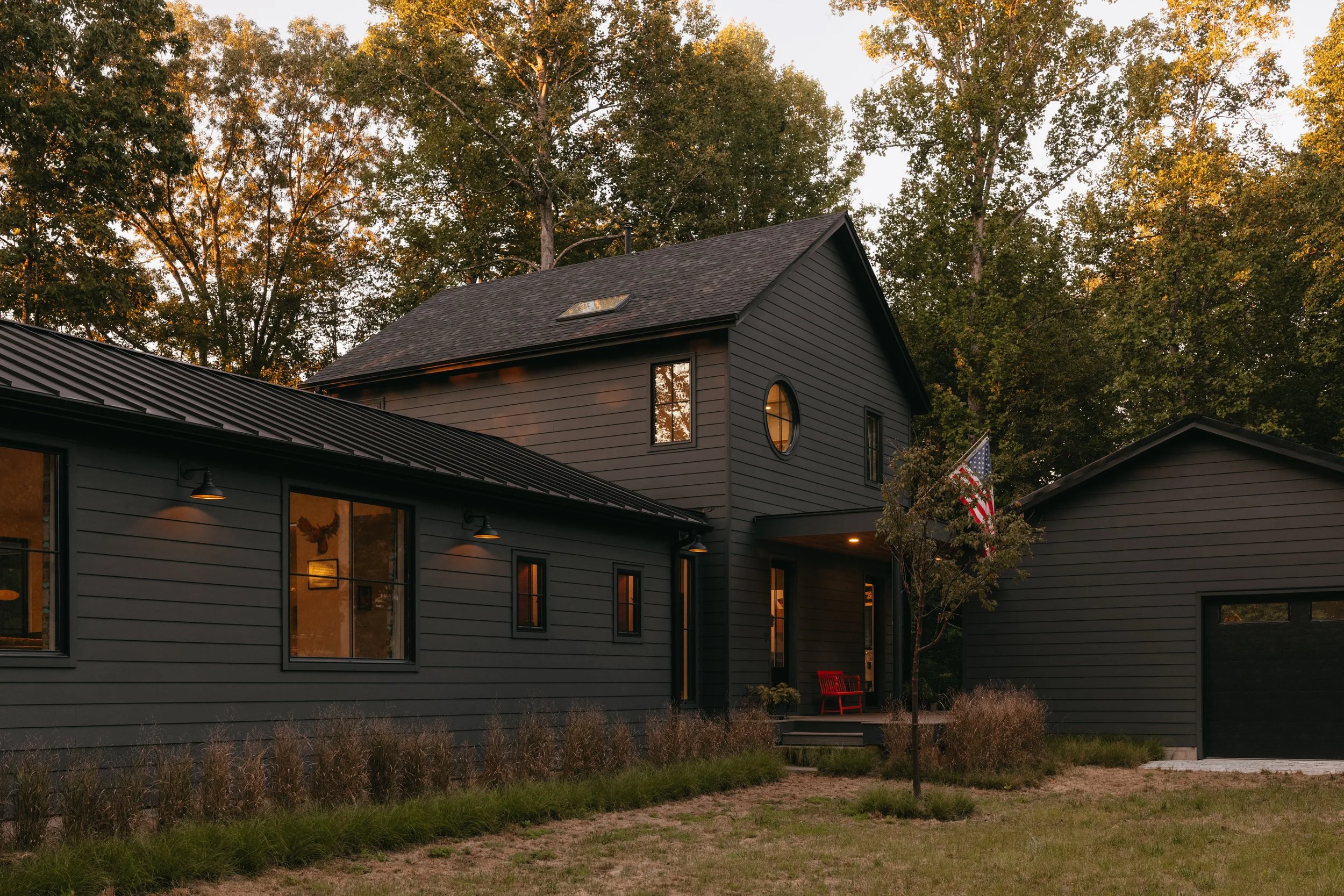 The home was constructed using conventional methods (pre-engineered wood trusses, wood stud framing, and poured in place foundation walls) to support efficient construction that started during Covid. The dark exterior reduced visual impact within the wooded setting, while interior materials were selected for durability, warmth, and minimal maintenance. Integrated built-ins were used to increase storage and reduce visual clutter. Energy performance was a key design consideration, resulting in the use of high insulation values and an ERV system to support indoor air quality and overall efficiency.