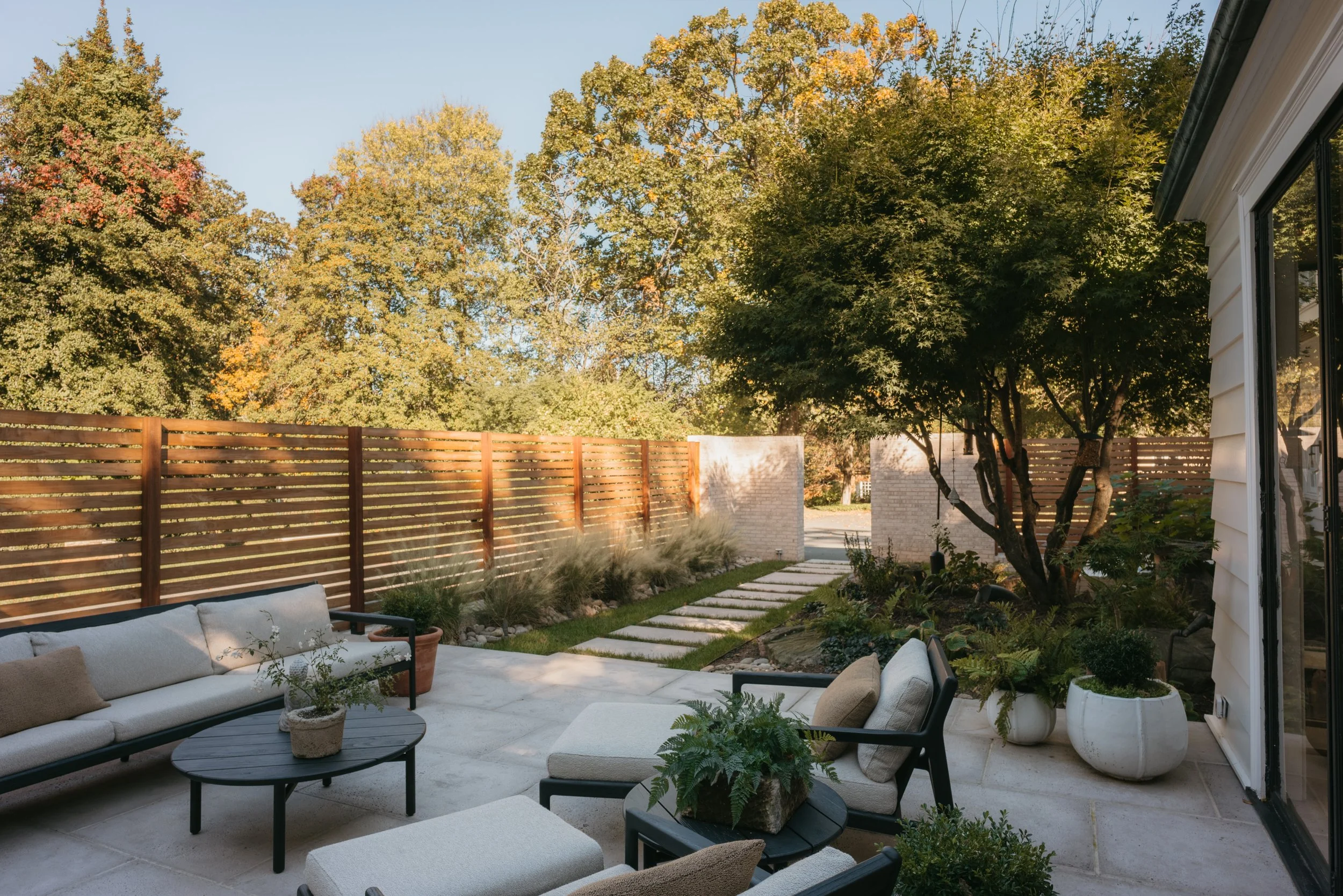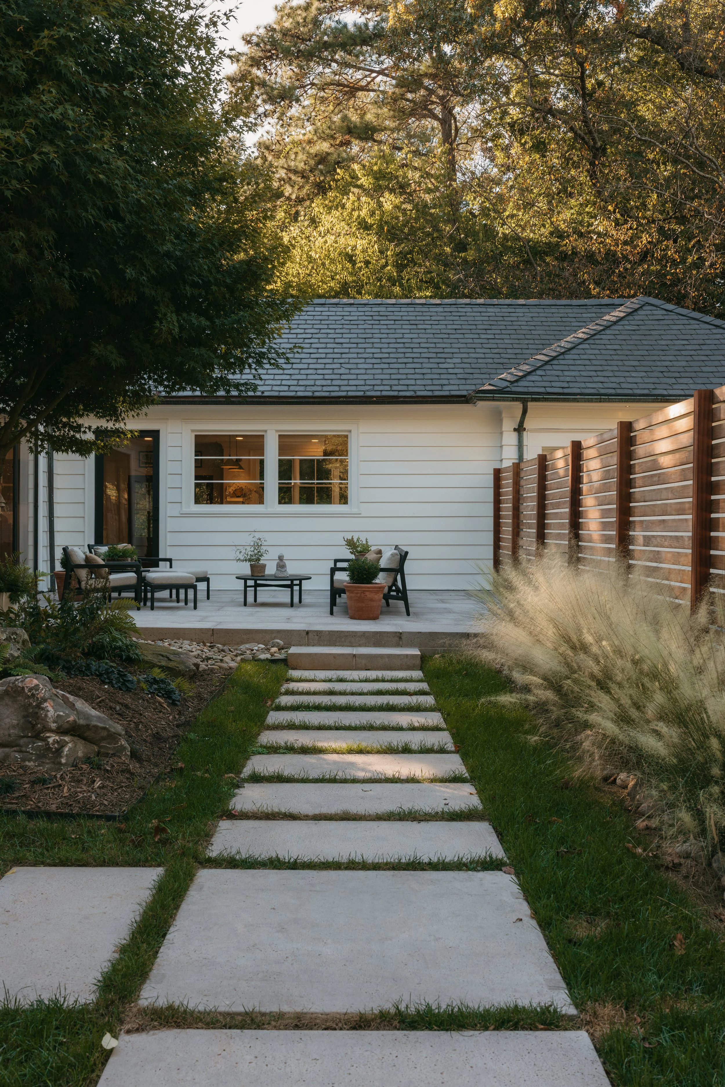 Exterior improvements included a new courtyard and privacy screen with a clearly defined entry point.